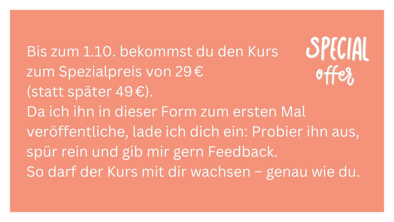 Und falls du dir noch mehr Austausch oder persönliche Begleitung wünschst, schreib mir gern.